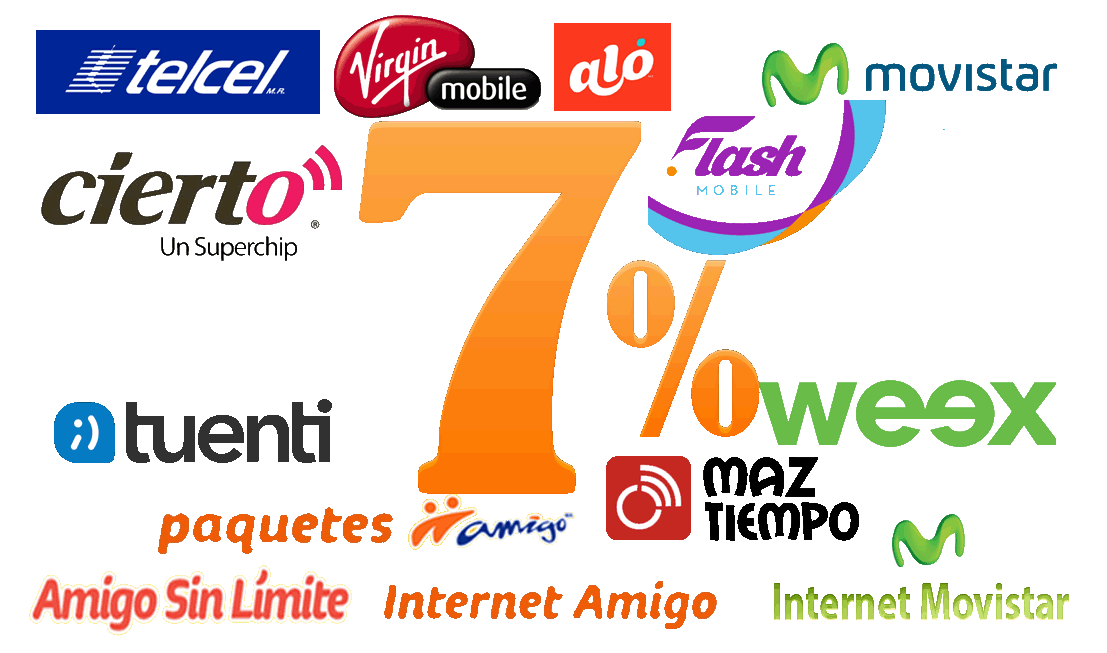Las comisiones en Recargas son pagados por adelantado, por ejemplo si usted deposita 1000 pesos se le abonará a su cuenta de recargas 1070.00 es decir el 7.0% de comision.